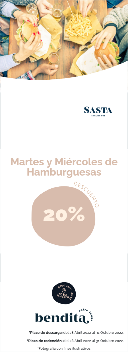 Los martes y los miércoles probá nuestras deliciosas hamburguesas con un 20% de descuento