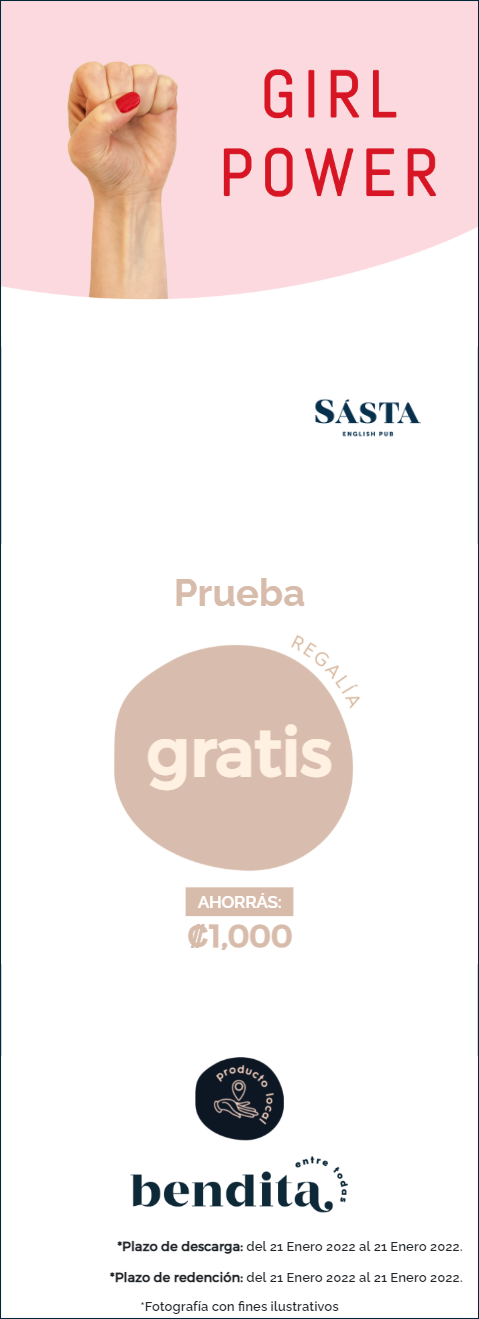 este cupón es una prueba. Este cupón esta sujeto a cantidades limitadas, por lo que su plazo de descarga puede finalizar antes de la fecha estipulada, al descargarse la cantidad máxima de cupones disponibles. Válido hasta la fecha final del plazo de redención o hasta agotar existencias de dicho producto.